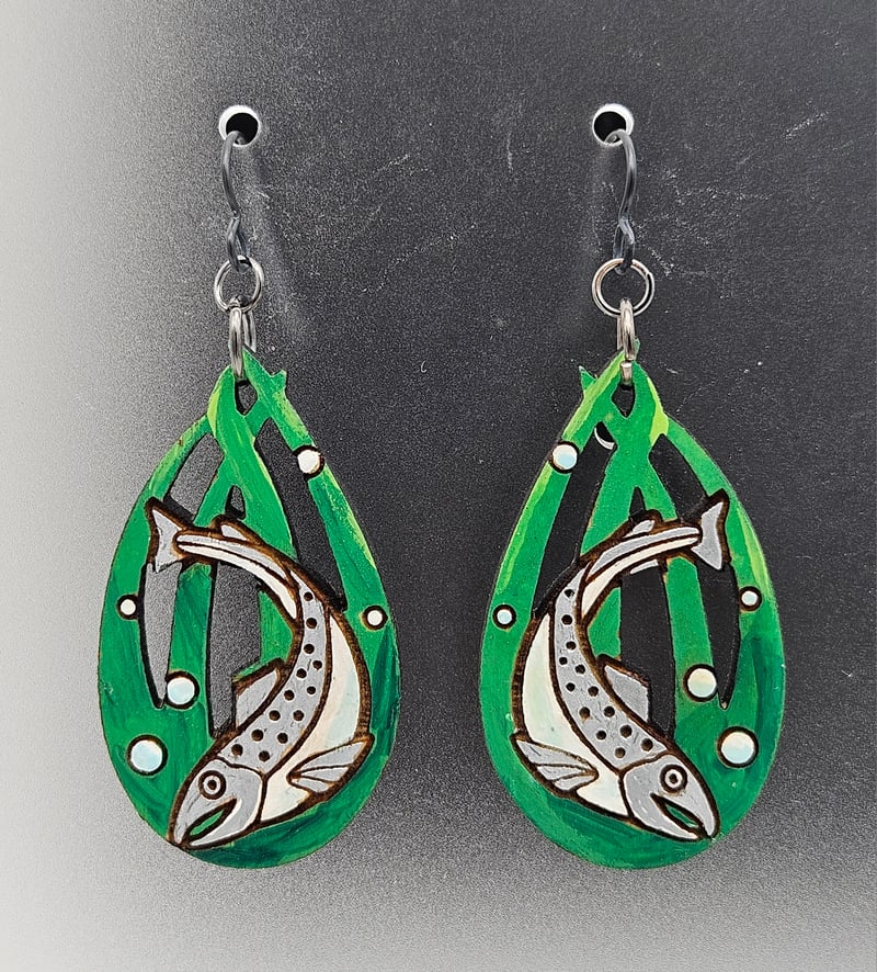 I cut these from lightweight wood and lovongly hand-paint every pair . The ear wires are pure, hypoallergenic niobium.