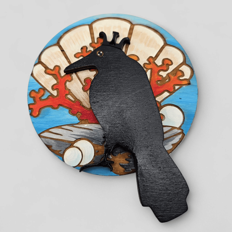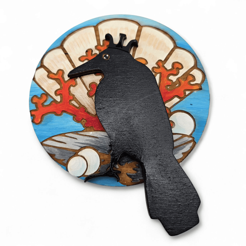 This small wall hanging is inspired by a crow I befriended while on vacation in Treasure Island, Florida. His black crown is my gift to him.