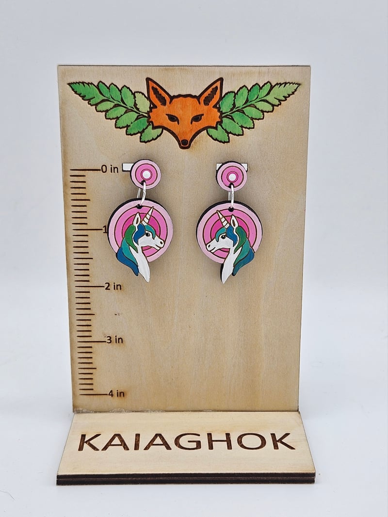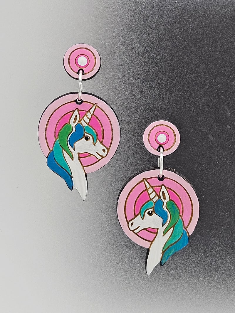 I cut these from wood, individually hand-paint them, then attach hypoallergenic titanium posts.